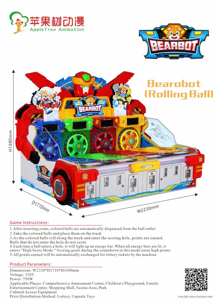 Step into the future of interactive amusement with Bearobot, the cutting-edge rolling ball game that combines mechanical innovation with addictive fun! Designed to captivate players of all ages, this dynamic machine turns every roll into a chance to win big. Perfect for high-traffic venues like amusement centers, shopping malls, parks, and family entertainment hubs, Bearobot isn’t just a game—it’s an experience.